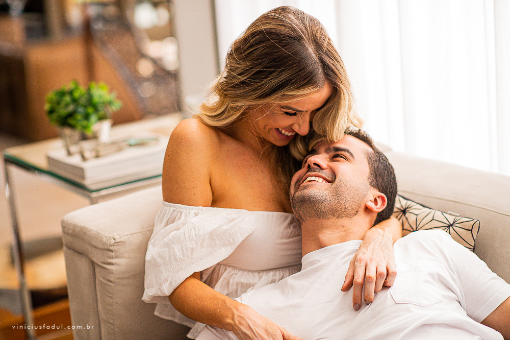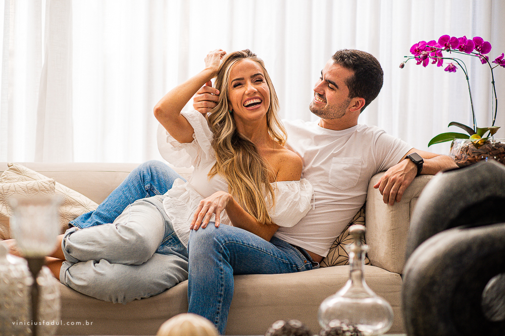 Tem casais que se sentem mais a vontade em frente da câmera e isso deixa o resultado ainda mais natural. A Stephanie e o Thairo foi um desses casais, eles optaram por um ensaio com um clima intimista em casa o que rendeu fotos muito espontâneas.