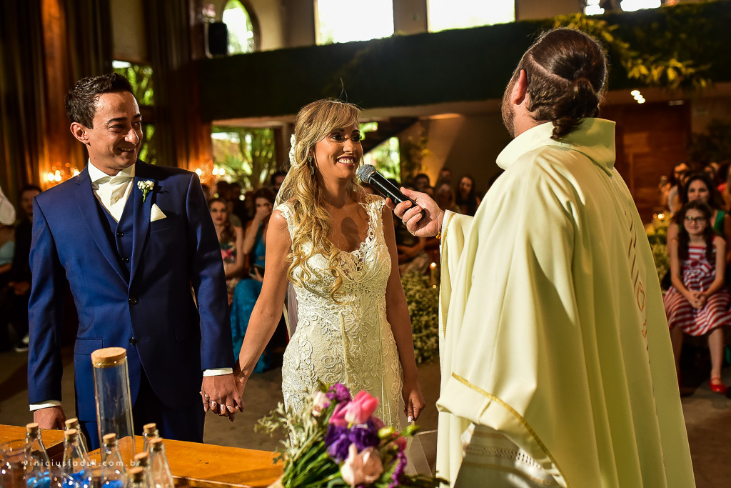 A cerimônia foi celebrada pelo Reverendo Lucas que com um discurso muito divertido e emocionante tirou risos e lagrimas de todos os convidados.