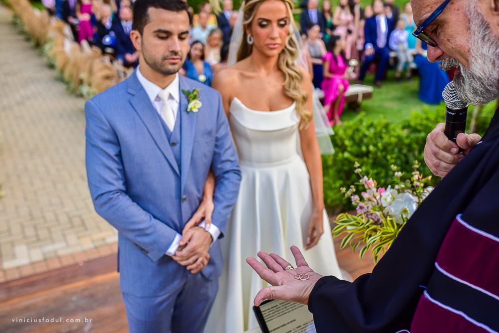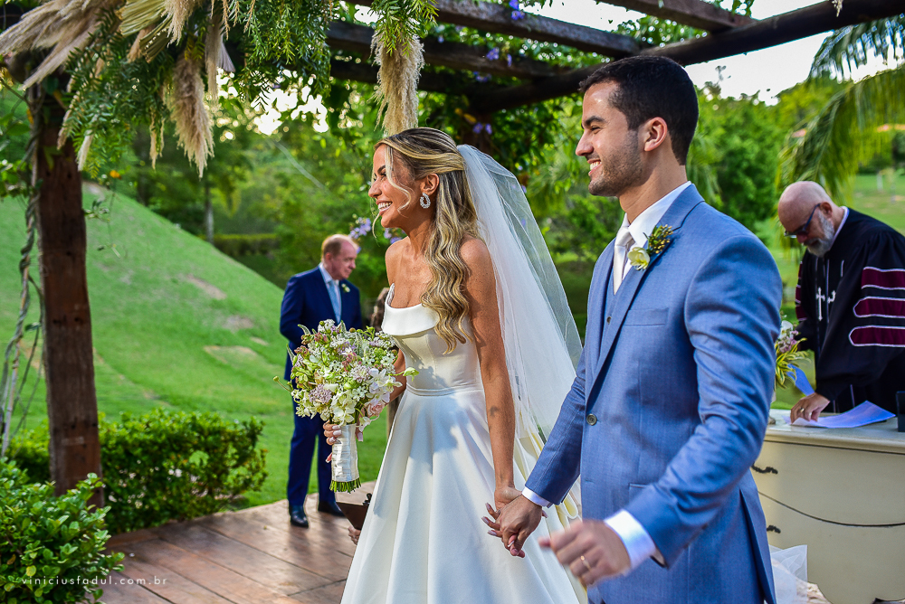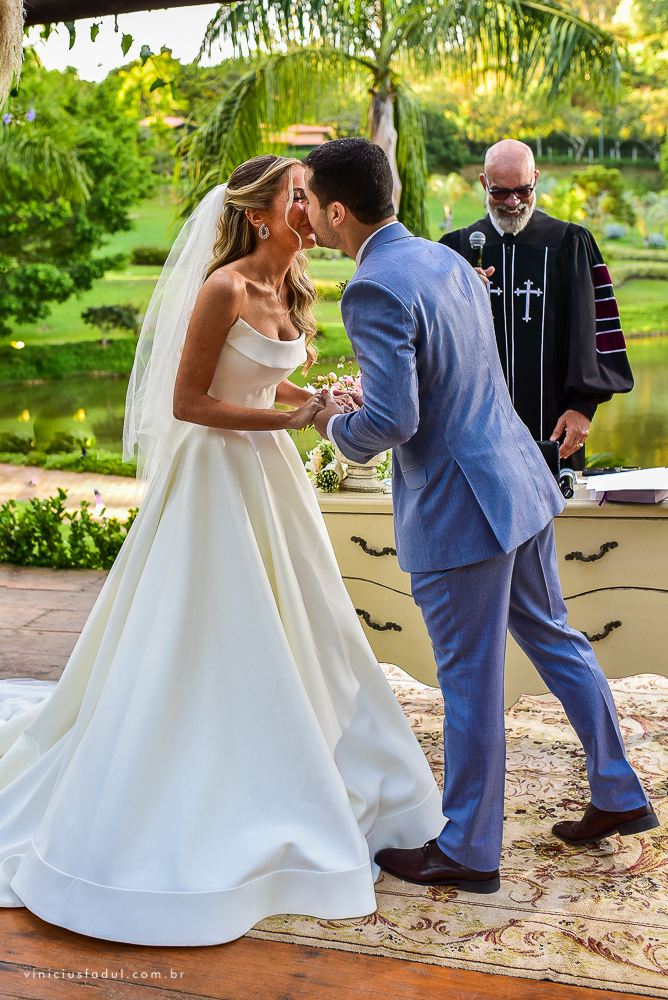 A cerimônia foi realizada pelo Pastor Pedrão @pastorpedrao, que realizou a celebração com um clima super descontraído para os noivos e convidados.